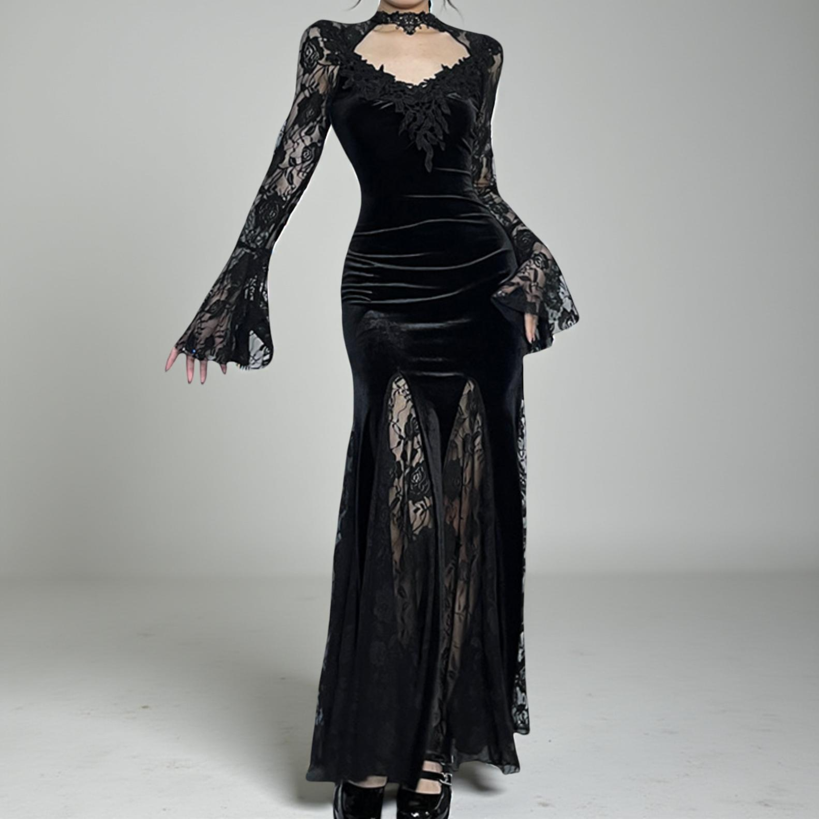 Quem nunca sonhou em usar um vestido que une sensualidade, mistério e poder? O nosso Vestido Longo de Veludo com Renda foi criado para mulheres que querem se sentir hipnotizantes, seja em eventos noturnos, festas temáticas ou no dia a dia do estilo gótico.